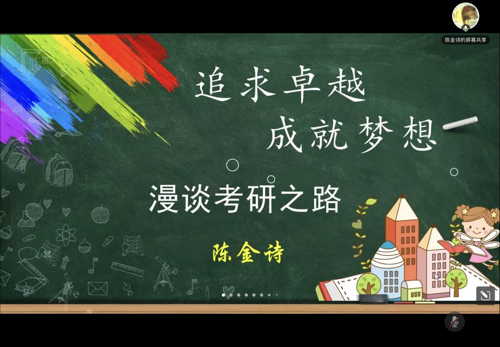 2022年9月15日晚上7点,英国上市公司365邀请广东外语外贸大学英语教育公司副经理陈金诗教授为全院员工开展了以“追求卓越 成就梦想——漫谈考研之路”为主题的线上职业规划辅导会。英国上市公司365苏红经理、李明希副书记及全体在校生参加了该辅导会。